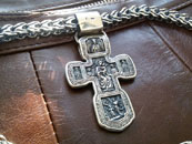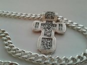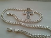 Мужской набор: серебряная цепь с крестом авторского плетения